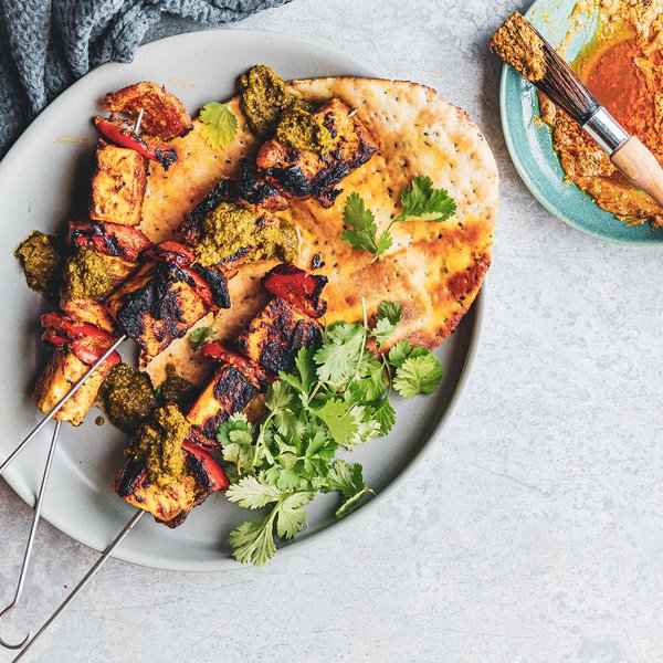 قدمها مباشرة مع السلطة وخبز البيتا على الجانب.