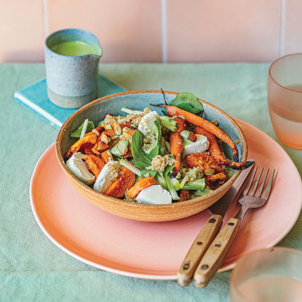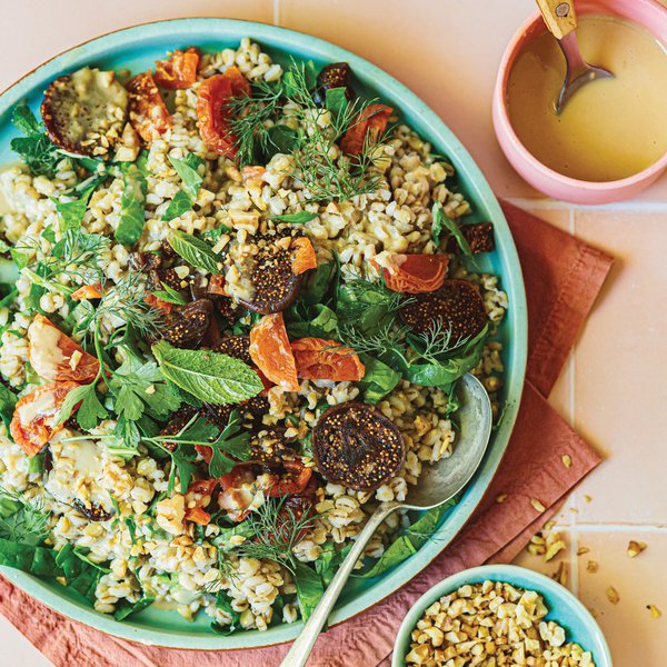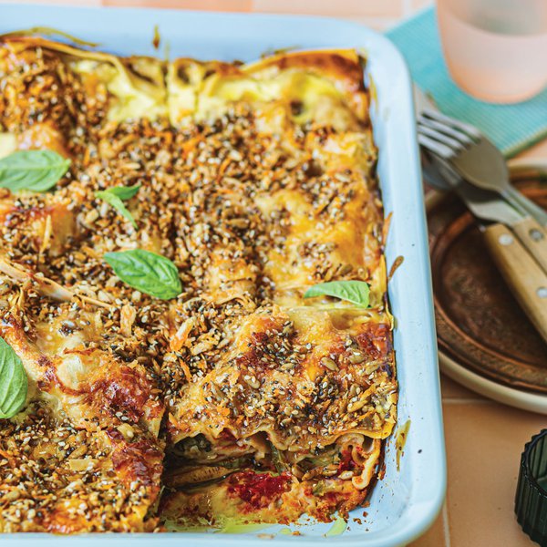 يُقدّم مع الخبز المسطّح الساخن ورايتا زبادي الصويا.