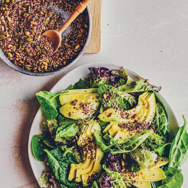 تُرشّ البذور المتبقّية على الوجه.