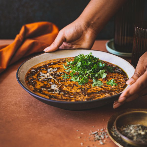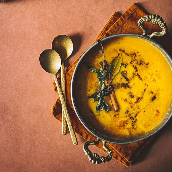تُسكب الكميّة المتبقية من التوابل فوق العدس ويُقدّم مع خبز الروتي أو البوريس الطازج أو مع الأرزّ المطهي على البخار.