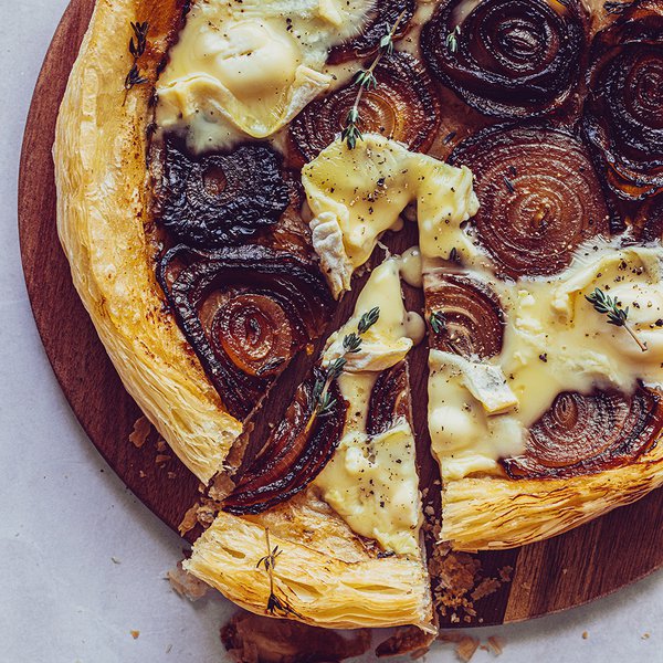 Creamy baked red onions with brie