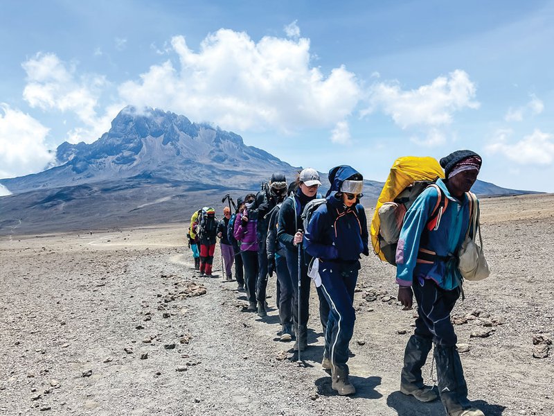 كان مرشدنا الرئيسي يدعى تشارلي، ورافقه 10 مرشدين مساعدين، وطباخون، وحمّالون، والمزيد من طاقم العمل. وكانت الجائحة قد ألقت بظلالها الثقيلة على تنزانيا، خاصة وأن السياحة تشكّل مصدر دخل مهم للسكان. أما الطاقم، فلم تكن رحلتنا هذه سوى الثانية لهم في عامين، وبفضلها عمّت أجواء من المرح ودبّت الحماسة في نفوس أعضاء الفريق لأنهم عادوا للعمل من جديد، فشاركناهم الحماسة. كنا بأيدٍ أمينة، ومعنا المعدات اللازمة، ومع فريق على معرفة تامة بما ينبغي عمله، وأصبحنا مستعدين.