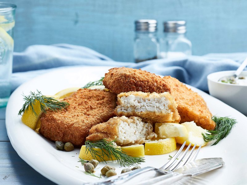 يمكن خبز أصابع السمك النباتية في الفرن لمدة 25 دقيقة وستكون مقرمشة ولذيذة للغاية. عادة ما أخدمهم مع مايونيز نباتي أو صلصة تارتار ونبات الكبر. عندما قمت بتطوير هذه ، كنت أحاول تكرار شرائح السمك من ماكدونالدز ، والتي أحب أصدقائي تناولها. اليوم ، هو أحد منتجاتنا الأكثر مبيعًا.
