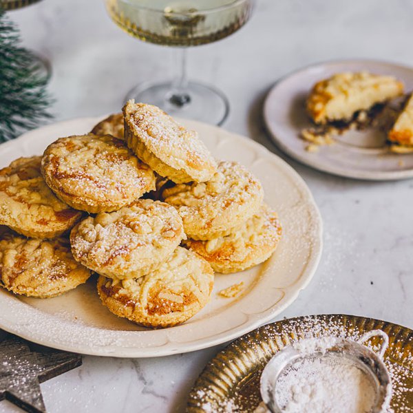 تُلّف العجينة المتبقية من القوالب، وباستخدام قاطعة كوكيز على شكل نجمة، تُقطّع العجينة على شكل نجمات لتوضع على الفطائر.