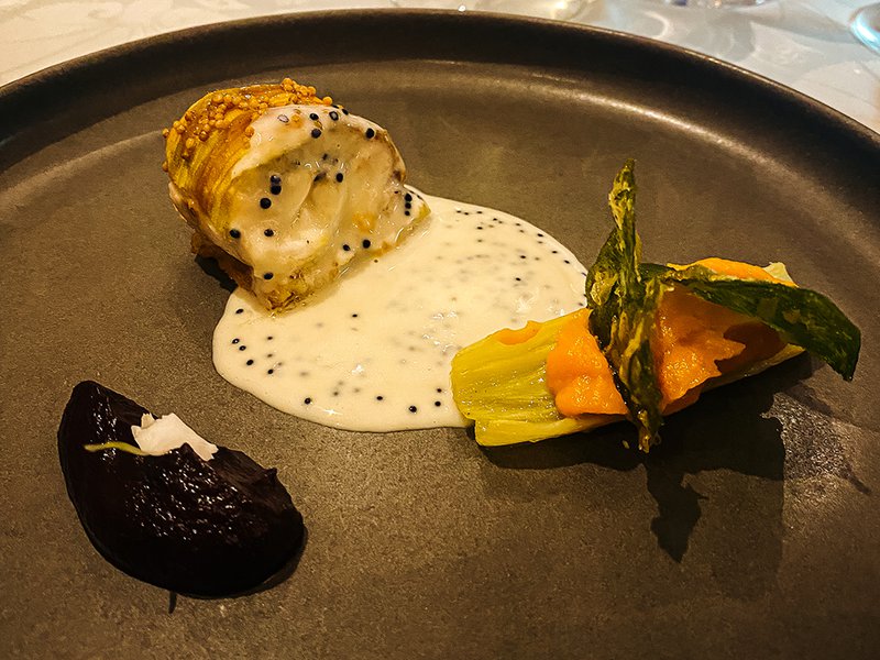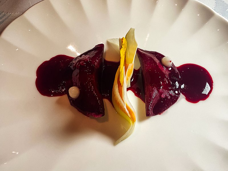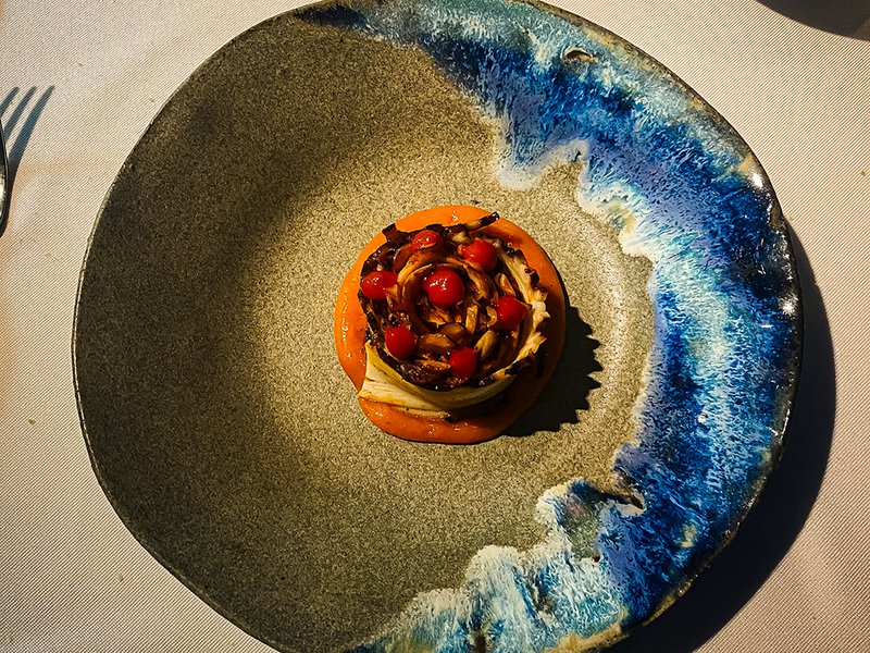 The chef’s spin on Ottoman food shines in dishes like the hand-made beetroot dumplings stuffed with fresh basil cottage cheese, pickled kohlrabi and yellow pepper purée, the slow-cooked battered potato mash with beef marrow sauce and the Boza sorbet, a dessert inspired by a traditional autumnal Ottoman drink made from fermented corn and wheat. But the real showstopper is the Mediterranean grouper fillet with fresh fennel, sweet potato and spicy cherry purée, topped with crispy chard flakes, tahini sauce and courgette blossoms.