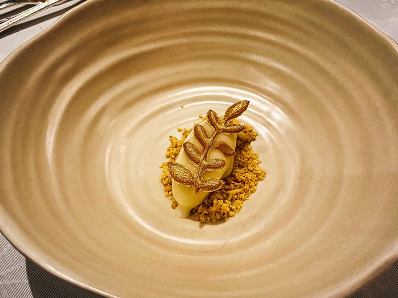 The main courses honour the sea and land with dishes such as olive oil-poached monkfish on a bed of potato purée with crispy potato, and tender slow-cooked lamb shoulder and lamb belly meatballs with piyaz (tahini purée). The gastronomic journey concludes with fragrant olive oil and sage ice cream accompanied by crispy baklava pastry and hazelnut cream.