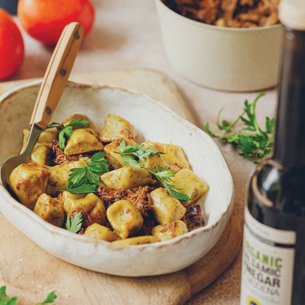 To make the sauce, finely chop the onions and crush 1 garlic clove. Heat the rest of the olive oil in a large pan then add the onion and garlic. Sauté for 5 minutes until softened. Stir in the chilli flakes, oregano, tinned tomatoes, roasted mixed peppers and salt. Mix well and simmer gently for 20 minutes. Place the sauce in a serving platter.