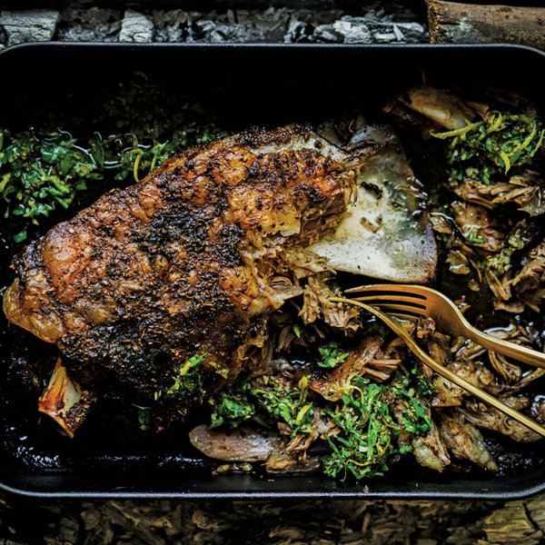 Scatter the soaked cinnamon sticks onto the coals. Immediately place the chuck in a roasting tray and place in the barbecue. Close the lid and smoke for 3 hours, checking the temperature every now and then and adding more charcoal, if necessary, to keep the temperature constant.