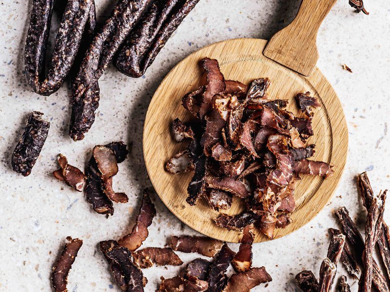 Listed as one of the top ten Southern African foods to try, biltong is one of many dried meat snacks. “Biltong, dry wors (dry sausages), chilli bites all are forms of dried, cured meats with their own unique shapes, taste and forms. [They are available as] whole pieces, sticks, slices, dry sausages in all lengths and thickness or just simple bite-sized nibbles.”