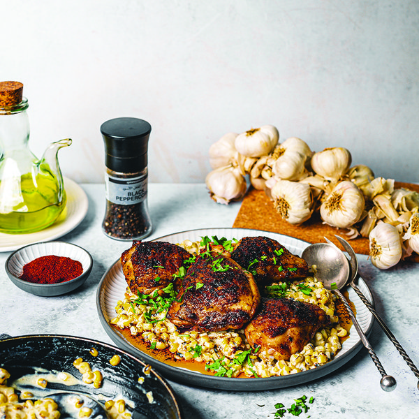 Place the chicken thighs in a large bowl. Pour over the marinade and mix with the chicken, making sure the thighs are well coated with the marinade. Cover the bowl with cling film and place in the fridge to marinate for 4 hours at least or up to 24 hours. When ready to cook, remove the chicken thighs from the fridge and allow them to come to room temperature, approx. 30 minutes.