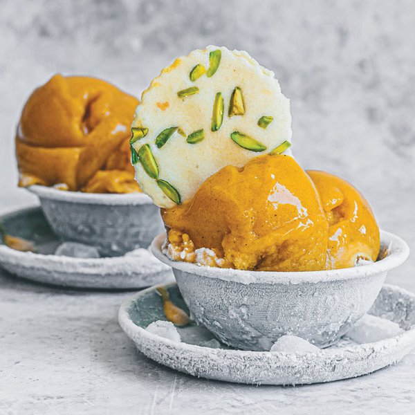 Welcome autumn to your home with a decadent dessert that makes a beautiful finale to a fall dinner party. Recipe makes 1l of sorbet with wafers